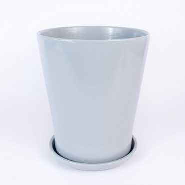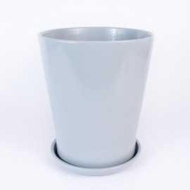 Donica ceramiczna okrągła w odcieniu szarego połysku. Posiada otwór na spodzie oraz podstawkę w tym samym odcieniu.