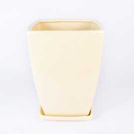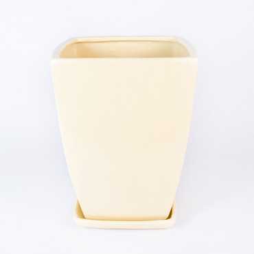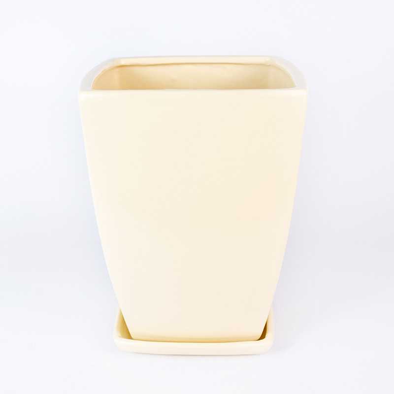 Donica ceramiczna kwadratowa w odcieniu kremowego połysku. Posiada otwór na spodzie oraz podstawkę w tym samym odcieniu.