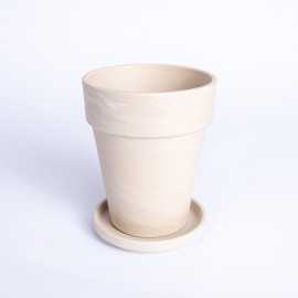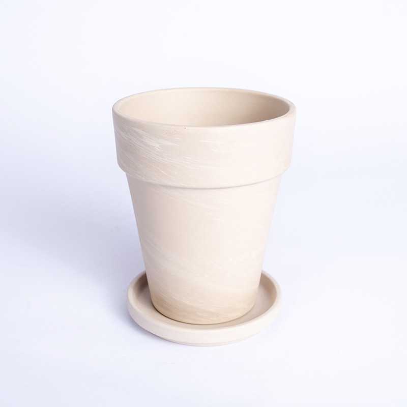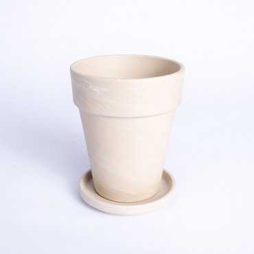 Wysoka donica z terakoty w kolorze granitowym wraz z podstawką.