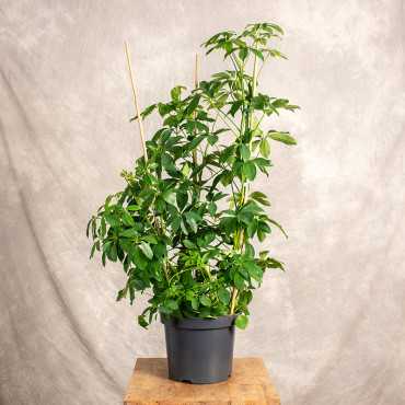 Szeflera, należąca do rodziny Araliaceae, pochodzi z Australii i Nowej Zelandii. W środowisku naturalnym jest 40-metrowym drzewem, gdzie podczas australijskiej wiosny pokrywa się czerwonymi kwiatami. W domu dorasta do 3-4 m wysokości i około 1,5 m szerokości. Nazwę zawdzięcza duńskiemu botanikowi ( Jacob Christian Scheffler ).