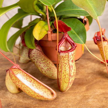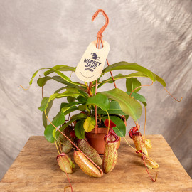 Dzbanecznik 'Sam' to egzotyczna roślina mięsożerna, która w naturze rośnie w lasach deszczowych Malezji. Charakterystyczną cechą dzbanecznika są pułapki w kształcie dzbanków, które wabią owady i trawią je. Nazwa dzbanecznika pochodzi od greckiego słowa "nepenthes", które oznacza "zapominający o troskach" i odnosi się do właściwości niektórych gatunków dzbaneczników, które zawierają substancje odurzające. Gatunek 'Sam' to mieszańce różnych dzbaneczników, które cechują się różnorodnymi kolorami i kształtami dzbanków.