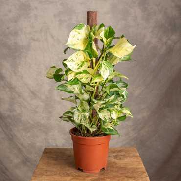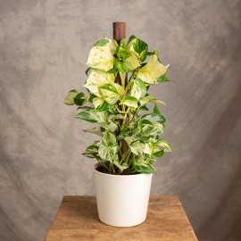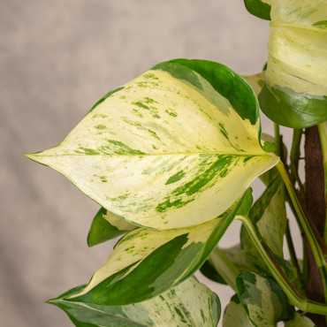 Epipremnum 'Manjula' to wyjątkowa odmiana epipremnum o charakterystycznych, biało-zielonych liściach z nieregularnymi, marmurkowymi wzorami. Liście są szerokie, sercowate i mają lekko falowane brzegi, co nadaje roślinie elegancki i unikalny wygląd. 'Manjula' to roślina łatwa w uprawie, idealna zarówno dla początkujących, jak i doświadczonych miłośników zieleni.