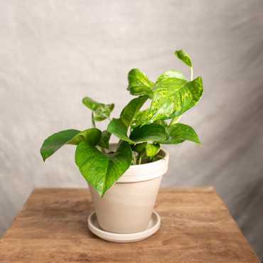 Marble Green' to nowa odmiana epipremnum o lancetowatych, soczyście zielonych liściach z marmurkowymi, limonkowymi przebarwieniami. Szybko rośnie i nie wymaga za wiele troski. Najlepiej wygląda w wiszących pojemnikach lub makaramch.
