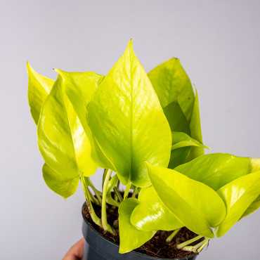 Epipremnum złociste 'Neon' to pnącze, które wyróżnia się jasno zielonym - limonkowym kolorem liści. Odpowiednia do donic wiszących oraz do prowadzenia na podporach.