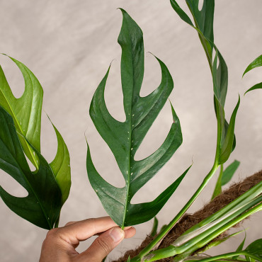 Epipremnum pinnatum ‘Baltic Blue’ to efektowne, szybko rosnące pnącze o charakterystycznych liściach w chłodnym, niebieskawo-zielonym odcieniu. Wyróżnia się tym, że stosunkowo wcześnie wykształca naturalne wcięcia, co nadaje roślinie egzotycznego wyglądu nawet w młodym wieku. Najlepiej rośnie w jasnym, rozproszonym świetle, ale dobrze toleruje także półcień.