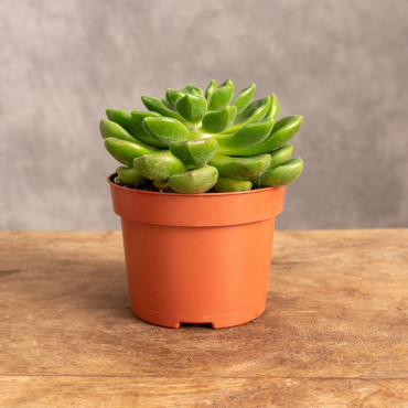 Eszeweria 'Chubbs' to kompaktowy sukulent o charakterystycznej, zwartej rozetce mięsistych liści w odcieniach soczystej zieleni. Jej niewielki, kulisty pokrój i estetyczny wygląd sprawiają, że doskonale nadaje się do uprawy w doniczkach i kompozycjach sukulentowych. Preferuje stanowiska słoneczne oraz dobrze przepuszczalne podłoże.