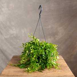 Eszynantus japhrolepis to wyjątkowa roślina o zwisającym pokroju, która zachwyca zarówno bujnym ulistnieniem, jak i efektownymi kwiatami. Ma małe, owalne, błyszczące liście o intensywnie zielonym kolorze, rosnące gęsto na zwisających pędach.