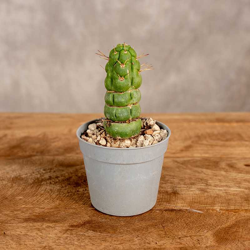 Eulychnia castanea 'Spiralis' to fascynujący kaktus, który wyróżnia się swoim nietypowym wyglądem. Nazwa "Spiralis" odnosi się do charakterystycznych, spiralnie ułożonych łodyg. Jest to kaktus kolumnowy, pokrytych gęstymi, spiralnie ułożonymi cierniami, co nadaje roślinie niepowtarzalny i atrakcyjny wygląd, przyciągający uwagę kolekcjonerów i miłośników sukulentów.