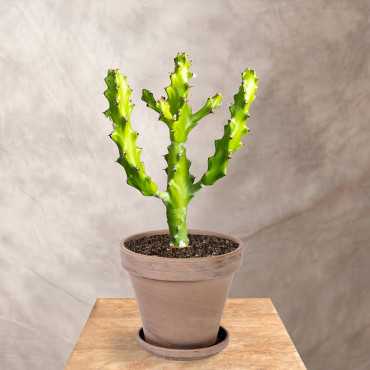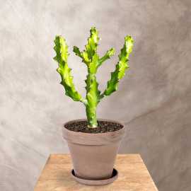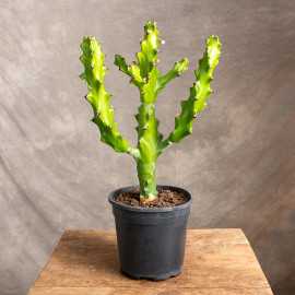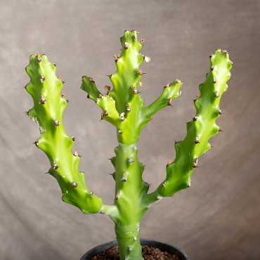 Euphorbia mayuranthanii to wyjątkowa roślina z rodziny wilczomleczowatych (Euphorbiaceae), pochodząca z tropikalnych rejonów Azji. Jest to sukulent, który charakteryzuje się interesującym wyglądem. Roślina ma tendencję do rozrastania się w formie krzewu lub niskiego drzewa. Wytwarza kremowo-zielone, małe kwiaty, które pojawiają się na szczytach pędów. Euphorbia mayuranthanii rośnie wolno, ale może osiągać wysokość do 1-2 metrów w odpowiednich warunkach.