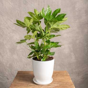 Fatsja japońska co zadziwiające, cieszy się aktualnie niewielką popularnością. Choć według nas niedługo stanie się kolejną rośliną na którą zacznie się moda. Atrakcyjna ze względu na dłoniasto klapowane liście, małe wymagania świetlne i łatwość uprawy. Jeśli widzisz w tej roślinie to co my, wyprzedź trendy i dołącz do drużyny fatsji już dziś!