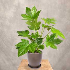 Fatsja japońska co zadziwiające, cieszy się aktualnie niewielką popularnością. Choć według nas niedługo stanie się kolejną rośliną na którą zacznie się moda. Atrakcyjna ze względu na dłoniasto klapowane liście, małe wymagania świetlne i łatwość uprawy. Jeśli widzisz w tej roślinie to co my, wyprzedź trendy i dołącz do drużyny fatsji już dziś!