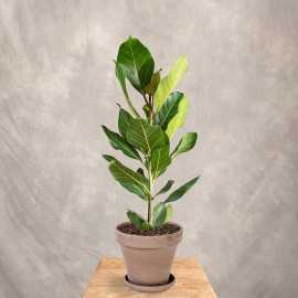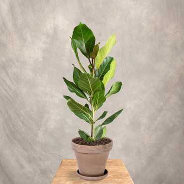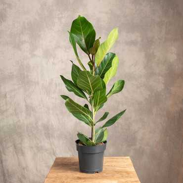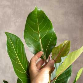 Fikus bengalski 'Joy' to piękna i elegancka roślina z dużymi, skórzastymi liśćmi w odcieniu soczystej zieleni. Blaszka liściowa dodatkowo ozdobiona jest wyraźnie zaznaczonym unerwieniem. Jak każdy fikus lubi stanowiska z dużą ilością rozproszonego światła.