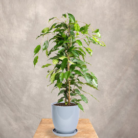 Ficus benjamina 'Danita' – elegancka odmiana figowca o gęstym ulistnieniu i drobnych, błyszczących, ciemnozielonych liściach. Doskonale sprawdza się jako roślina doniczkowa w domach, biurach i przestrzeniach publicznych.