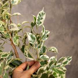 Fikus 'Twilight' - Odmiana o białej variegacji skupionej na brzegach liści.