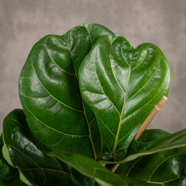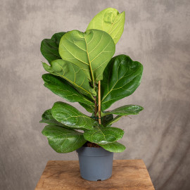Fikus lirolistny ( Ficus lyrata ) pochodzi z Afryki zachodniej. Ma grube, skórzaste, soczysto - zielone liście w kształcie skrzypiec lub liry. Liście są duże, w naszych warunkach dorastają do 30 cm długości i 25 cm szerokości. W naturze dorastają nawet do 60 cm długości. Po przycięciu fikus ładnie się rozgałęzia i jest bardzo dekoracyjny. Potrzebuje dużo miejsca i nie lubi towarzystwa innych roślin.
