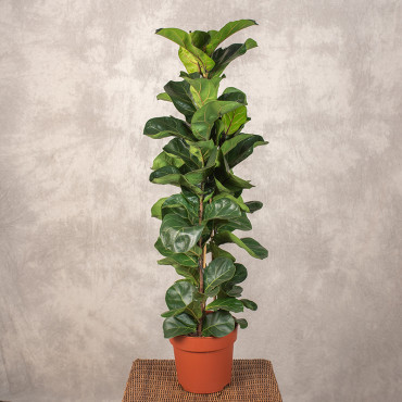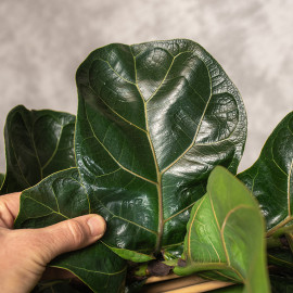 Fikus lirolistny 'Bambino' ( Ficus lyrata 'Bambino' ) pochodzi z Afryki zachodniej. Ma grube, skórzaste, soczysto - zielone liście w kształcie skrzypiec lub liry. Liście tej odmiany są dużo mniejsze od pierwowzoru i rosną gęściej.