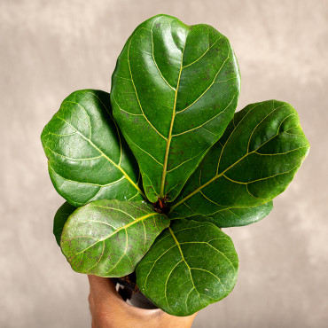 Fikus lirolistny ( Ficus lyrata ) pochodzi z Afryki zachodniej. Ma grube, skórzaste, soczysto - zielone liście w kształcie skrzypiec lub liry. Liście są duże, w naszych warunkach dorastają do 30 cm długości i 25 cm szerokości. W naturze dorastają nawet do 60 cm długości. Po przycięciu fikus ładnie się rozgałęzia i jest bardzo dekoracyjny. Potrzebuje dużo miejsca i nie lubi towarzystwa innych roślin.