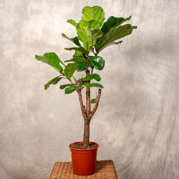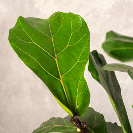 Fikus lirolistny ( Ficus lyrata ) pochodzi z Afryki zachodniej. Ma grube, skórzaste, soczysto - zielone liście w kształcie skrzypiec lub liry. Liście są duże, w naszych warunkach dorastają do 30 cm długości i 25 cm szerokości. W naturze dorastają nawet do 60 cm długości. Po przycięciu fikus ładnie się rozgałęzia i jest bardzo dekoracyjny. Potrzebuje dużo miejsca i nie lubi towarzystwa innych roślin.