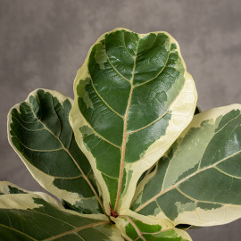 Fikus lirolistny ‘Variegata’ (Ficus lyrata ‘Variegata’) to spektakularna odmiana popularnego fikusa, która zachwyca nie tylko swoim pokrojem, ale przede wszystkim niezwykłym wybarwieniem liści. Jego duże, błyszczące liście o charakterystycznym, „lirowym” kształcie ozdobione są nieregularnymi kremowymi i jasnozielonymi przebarwieniami, dzięki czemu roślina wygląda jak żywe dzieło sztuki.