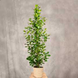Niezwykła roślina o atrakcyjnym pokroju i soczyście zielonych, błyszczących liściach. Pochodzi z Malezji. Ten fikus świetnie nadaje się do tworzenia form piennych. Odpowiednio przycięta roślina będzie świetnie wyglądać jako ozdoba w oranżerii, przeszklonej werandzie, a także na tarasach, czy większych balkonach.