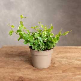 Fikus pnący 'White Sunny' jest szybko rosnącym pnączem o drobnych pstrokatych liściach. Nie znosi przesuszenia podłoża, może zrzucić wówczas wszystkie liście.