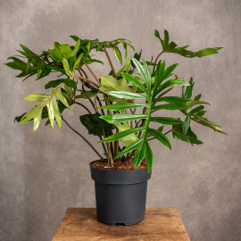 Filodendrony to popularne rośliny z rodziny obrazkowatych (Araceae), znane ze swoich pięknych liści o różnorodnych kształtach i wzorach. W naturze występują głównie w tropikalnych lasach deszczowych Ameryki Środkowej i Południowej, ale są uprawiane jako rośliny ozdobne na całym świecie. Filodendrony są cenione ze względu na swoje wyjątkowe liście, które zmieniają swój kształt w miarę wzrostu. Filodendron Mayoi charakteryzuje się błyszczącymi, intensywnie zielonymi liśćmi, które są mocno powcinane. Na uwagę zasługują także intensywnie czerwone ogonki liściowe.
