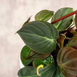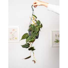 Rzadko spotykany filodendron o niezwykle aksamitnych liściach. Młode rośliny mają zielono-czerwone przebarwienia na liściach. Spodnia część blaszki liściowej jest bordowa. Rośnie bardzo szybko i jest łatwy w uprawie. Jego pędy mogą osiągać nawet do 10 m długości. Uprawiany jest najczęściej w wiszących pojemnikach lub przy podporach.