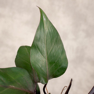 Piękny okaz o dużych, rozłożystych, błyszczących liściach w kolorze czekoladowo-zielonym. Dużą ozdobą są także ciemno-bordowe ogonki liściowe. Filodendron to roślina łatwa w uprawie. Preferuje stanowiska jasne i lekko ocienione. Będzie wdzięczny także za podwyższoną wilgotność powietrza.