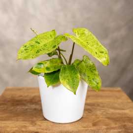 'Paraiso Verde' to kolekcjonerska odmiana filodendrona o wspaniałych, podłużnych, karbowanych liściach ozdobionych delikatną mozaiką w różnych odcieniach zieleni. To bardzo wyjątkowa roślina, trudno dostępna na rynku.