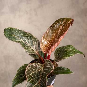 Filodendron 'Pink Birkin' to rzadko spotykana w sprzedaży wersja biało –zielonego, pasiastego 'Birkina'. Jest Bardzo poszukiwanym i pożądanym okazem przez kolekcjonerów. Efektowne liście wyrastają z intensywnie różowych łodyg i zachwycają prążkowanym lub zielono - różowym ubarwieniem. Gęsto rozłożone różowe paski rozchodzą się na blaszce liściowej wzdłuż nerwów. Młode liście zazwyczaj są jasne i to na nich widać najwięcej różowego koloru. Jednak z czasem to zieleń staje się bardziej wyrazista, kontrastując się z przebijającym odcieniem różu.