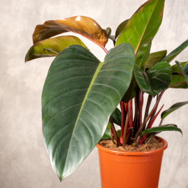 Filodendron 'Red Congo' to efektowna, szybko rosnąca roślina doniczkowa o zwartym, krzaczastym pokroju, osiągająca ok. 1 m wysokości. Wyróżnia się dużymi, błyszczącymi liśćmi, które młode są bordowo-brązowe, a z czasem stają się ciemnozielone. Cechą charakterystyczną są mocne, bordowoczerwone ogonki liściowe.
