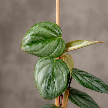 Filodendron sodiroi to wyjątkowy, kolekcjonerski filodendron ceniony za sercowate liście z charakterystycznym, srebrzystym połyskiem i wyraźnym unerwieniem. Kontrast między zielenią a metaliczną warstwą sprawia, że każda blaszka liściowa wygląda jak małe dzieło sztuki.