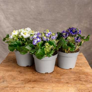 Fiołek afrykański 'Curly' to wyjątkowa odmiana, która wyróżnia się pięknie karbowanymi brzegami płatków oraz liści. Występuje w wielu kolorach do wyboru.
