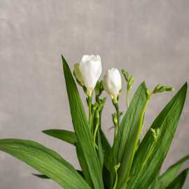 Frezja biała jest często używana w bukietach ślubnych i aranżacjach florystycznych