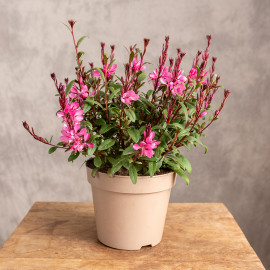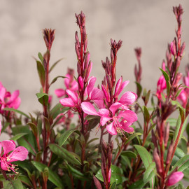 Gaura lindheimeri 'Gaudi Rose' to efektowna, wieloletnia bylina o lekkim, zwiewnym pokroju i licznych, różowo-karminowych kwiatach przypominających motyle. Roślina osiąga wysokość około 60–80 cm i kwitnie obficie od późnej wiosny aż do jesieni, tworząc malownicze, długotrwałe kwiatostany na cienkich, delikatnych pędach.