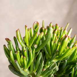 Grubosz 'Hobbit' to jedna z najciekawszych odmian gruboszy, która z uwagi na mięsiste liście, przeważnie wydłużone, rurkowato skręcone, jest nazywana uszami Shreka. Dzięki silnie rozgałęzionej koronie i zgrubiałej łodydze drzewko nadaje się do formowania.