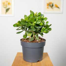Łatwy w uprawie sukulent z rodziny Crassulacea o zielonych, obłych mięsistych listkach spiczasto zakończonych. Tworzy symetryczne i gęste drzewka o grubych pędach, z dużą ilością masy liściowej.