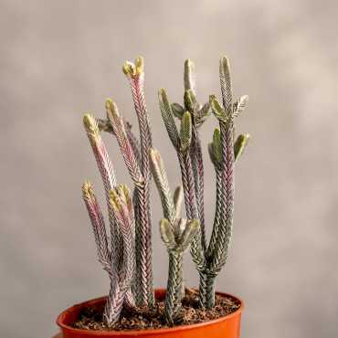 Piękny sukulent o niecodziennym, różowo-zielonym kolorze i ciekawej formie. Liście grubosza ułożone są bardzo gęsto i ściśle przylegają do pędu. Pędy rozgałęziają się na rożnych wysokościach i mogą osiągać do 30 cm wysokości.