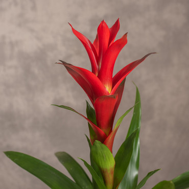 Guzmania ‘Rostara’ to tropikalna piękność z rodziny bromeliowatych, która zachwyca egzotycznym wyglądem. Tworzy elegancką rozetę długich, smukłych liści w intensywnej zieleni, z której wyrasta efektowny, czerwony kwiatostan. Sama roślina kwitnie długo i nie wymaga skomplikowanej pielęgnacji.