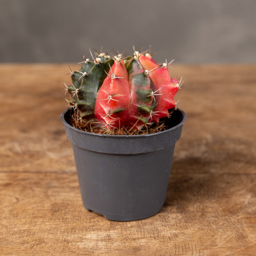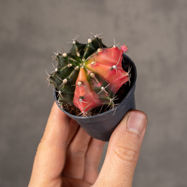 Gymnocalycium mihanovichii Variegata to wyjątkowy, kolekcjonerski kaktus ceniony za swoje spektakularne, wielobarwne wybarwienie. Kulisty korpus rośliny przybiera mieszankę intensywnych barw - różu, żółci, czerwieni, pomarańczu i zieleni tworząc efekt „rozświetlonej” variegacji, dzięki której każdy egzemplarz jest absolutnie unikatowy.