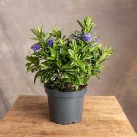 Hebe 'Blue Kiwi' charakteryzuje się zwartym, krzewiastym pokrojem. Osiąga wysokość od 30 do 60 cm. Liście hebe są małe, owalne i mają intensywny, zielony kolor. Największą atrakcją tej rośliny są jej kwiatostany – drobne, intensywnie niebieskie kwiaty, które tworzą spiczaste kłosy na końcach pędów. Kwiaty przyciągają owady zapylające, takie jak pszczoły i motyle.