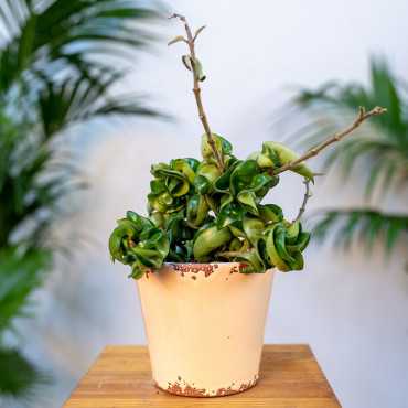 Hoja 'Compacta' jest pnączem o fantazyjnie poskręcanych listkach. Jeden pęd może osiągnąć długość nawet kilku metrów, odpowiednio pielęgnowana wyda baldachy różowych nieziemsko pachnących kwiatów.