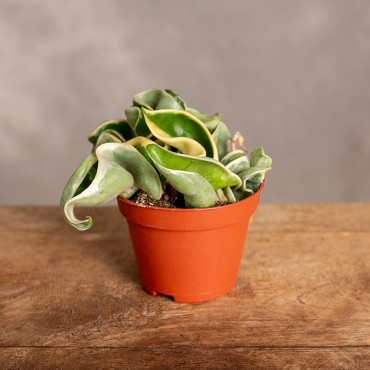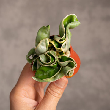 Hoya compacta ‘Mauna Loa’ to niezwykła odmiana hoi o fantazyjnie poskręcanych, mięsistych liściach, które tworzą efektowne, gęste pędy przypominające zielono-kremowe koraliki. Z czasem roślina może zachwycić także pachnącymi, różowo-białymi kwiatami w kształcie gwiazdek. To roślina idealna do uprawy doniczkowej - pięknie prezentuje się w zwisających osłonkach lub na półce, gdzie jej pędy mogą swobodnie opadać. Lubi jasne, rozproszone światło, umiarkowane podlewanie i ciepło.