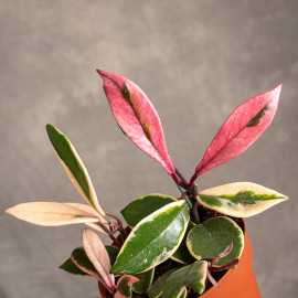 Piękna hoja z okrągłymi, kolorowo wybarwionymi liśćmi. W okresie kwitnienia pojawiają się drobne, błyszczące kwiaty zebrane w baldachy.
