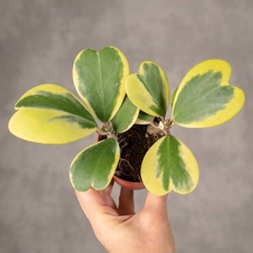Hoja kerrii to urocze pnącze pochodzące z rejonów Azji. Ma piękne liście w kształcie serc. Jest rośliną bardzo wolno rosnącą. Hoja kerrii yellow (variegata) posiada nieregularną, kremową obwódkę.