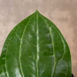 Kolekcjonerska i rzadko spotykana odmiana hoi o wspaniałych, sercowatych liściach w kolorze ciemnej zieleni. Blaszka liściowa dodatkowo ozdobiona jest delikatnym wzorem unerwienia. Liście są duże, talerzowate i mięsiste.