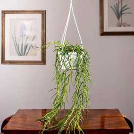 Hoya linearis po zawieszeniu tworzy zieloną kurtynę, co czyni ją bardzo popularnym wyborem dla tych, którzy kochają pnące rośliny doniczkowe.