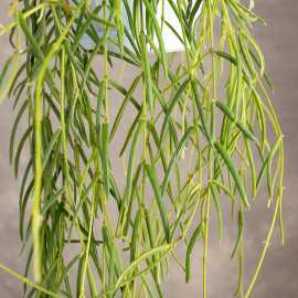 Hoya linearis po zawieszeniu tworzy zieloną kurtynę, co czyni ją bardzo popularnym wyborem dla tych, którzy kochają pnące rośliny doniczkowe.