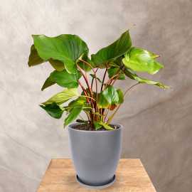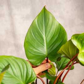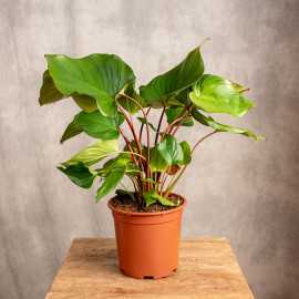 Homalomena 'Maggy' posiada zachwycające, duże liście o sercowatym kształcie, które osadzone są na długich burczkowych ogonkach, idealnie kontrastując się z zielenią blaszek. Mimo sporych rozmiarów liście są pełne lekkości ze względu na pofalowane brzegi. Dorosłe sadzonki mogą mierzyć nawet 100 cm. Roślina będzie wdzięczna za stanowisko ze światłem rozproszonym oraz podlewanie letnią odstaną wodą.