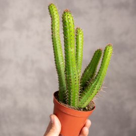 Cleistocactus samaipatanus to rzadko spotykany kaktus pochodzący z Boliwii. Tworzy smukłe, kolumnowe pędy, które z czasem mogą lekko się przewieszać. Powierzchnia pędów pokryta jest gęstymi, krótkimi kolcami w odcieniach złocisto-beżowych, co nadaje roślinie delikatny, puszysty wygląd. Największą ozdobą Cleistocactus samaipatanus są intensywnie pomarańczowo-czerwone, wydłużone kwiaty, które pojawiają się latem i efektownie kontrastują z zielenią pędów.
